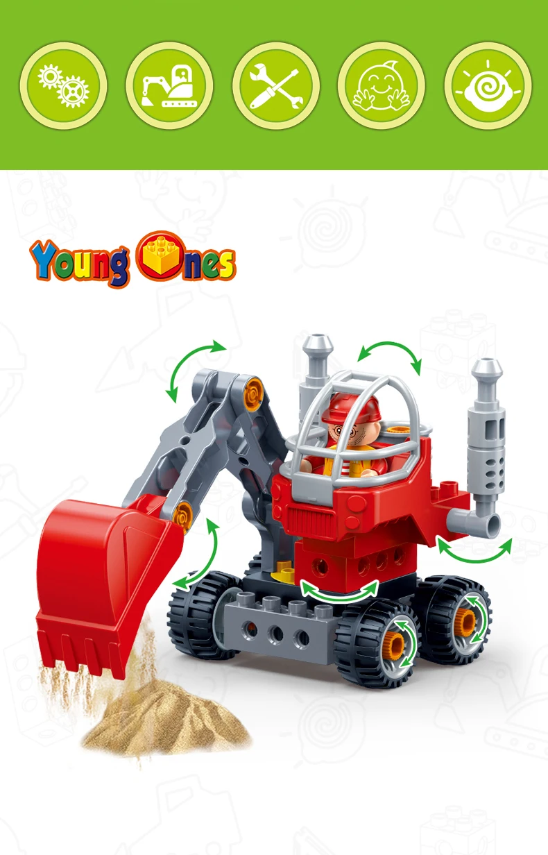 Конструктор "Ескаватор" (22 елм.) Розбудуйте свій власний унікальний світ разом з конструктором BanBao! Ця захоплива іграшка з будівельних блоків привносить у ваш дім безмежну творчість та можливості. Кожна деталь має своє визначене місце, а посібник крок за кроком допомагає вам створити ідеального героя чи незвичайний артефакт. Від епічних бойових роботів до захоплюючих героїв і неймовірних світів - BanBao дозволяє вам втілити будь-яку ідею у реальність. Цей конструктор - не лише розважальна іграшка, але й унікальна можливість для вашої дитини розвинути навички просторового мислення, творчості та логіки, під час якої вони будуть насолоджуватися кожним моментом побудови та гордитися своїм власним шедевром. З BanBao ваші можливості необмежені - дозвольте вашій уяві вільно розквітнути!