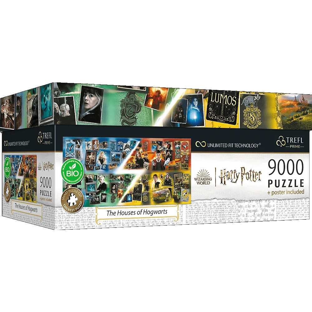 *Пазли - (9000 елм.) - Безмежна колекція: "Гарі Потер" / Trefl Відкрийте для себе головоломку Trefl Prime UFT - The Houses of Hogwarts, яка складається з вражаючих 9000 елементів ! Подорожуйте у світ Гаррі Поттера та складіть величезну головоломку із зображенням членів і відомих символів чотирьох будинків Гоґвортсу .Чим вони виділяються?- найтовстіший картонний пазл на ринку,- особлива неправильна форма елементів,- пазл можна рухати та обертати, не боячись розвалитися.Ви можете поєднати 6 пазлів (по 1500 елементів кожен), щоб створити гігантське зображення, запропоноване на плакаті, або дати волю своїй уяві та створити власну композицію!Пазли чудово тренують пам'ять, розвивають ручні здібності, тренують концентрацію, терпіння та проникливість. Унікальний подарунок для любителів головоломок, дорослих і дітей від 12 років. Загальний розмір головоломки, з’єднаної запропонованим нами способом, становить 1985,6 x 928 мм *.*Панелі/окремі пазли також можна з’єднувати будь-яким способом завдяки технології UFT. Індивідуальний спосіб з'єднання визначає різний розмір всієї композиції.