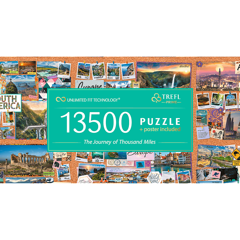 Пазли - (13500 елм.) - Безмежна колекція: "Подорож на тисячу миль" Відкрийте для себе головоломку Trefl Prime UFT, що складається з вражаючих 13 500 елементів! Впорядкуйте величезну головоломку з зображенням найвідоміших місць у світі, які знаходяться у списку кожного мандрівника! Що змушує їх виділитися? - Найгустіший картон головоломки на ринку, - Спеціальна, нерегулярна форма елементів, - Головоломку можна перемістити і обертати, не боячись розпадатися. 9 головоломки головоломки (кожні 1500 елементів) можна поєднувати у гігантському зображенні, запропонованому на плакаті, або дозволити вашій уяві поступатися і створити власну композицію! Головоломка - це чудове навчання пам’яті, розвиток ручних навичок, концентрація, терпіння та сприйнятливість. Унікальний подарунок для любителів головоломки, дорослих та дітей старше 12 років. Загальний вимір головоломки, поєднаної в способі, ми пропонуємо 1 985,6 х 1 376 мм*. *Панелі/окремі головоломки завдяки технології UFT також можуть бути підключені будь -яким чином. Індивідуальний метод з'єднання визначає інший вимір усієї композиції.