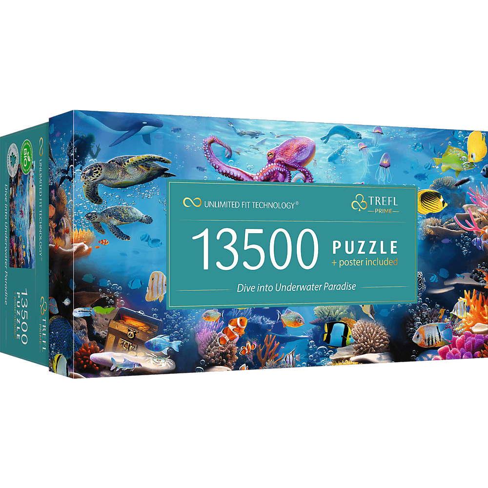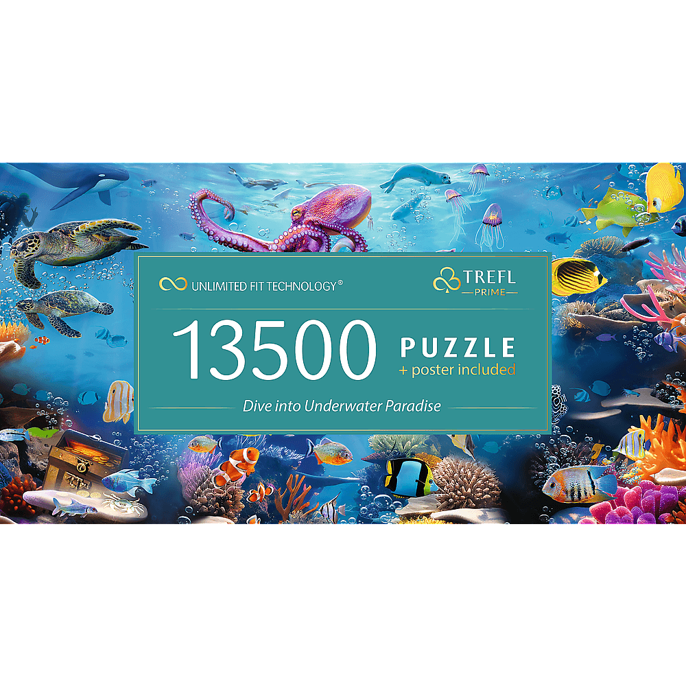 *Пазли - (13500 елм.) - Безмежна колекція: "Поринь у підвоний рай" / Trefl Відкрийте для себе головоломку Trefl Prime UFT - Пориньте у підводний рай , яка складається з вражаючих 13 500 елементів ! Подорожуйте під поверхнею океану, щоб помилуватися дивовижним світом водних рослин і тварин.