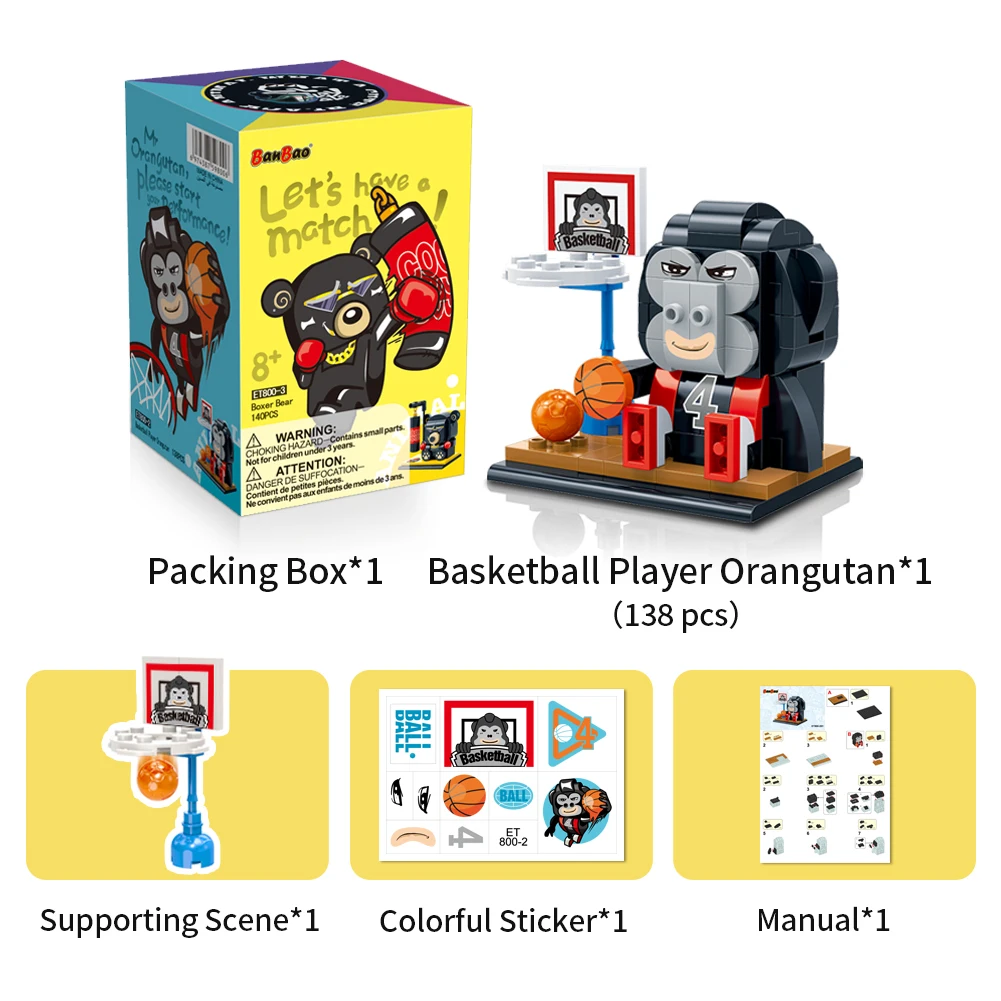 Конструктор "Персонаж" (138 елм.) Мавпочка баскетболіст Розбудуйте свій власний унікальний світ разом з конструктором BanBao! Ця захоплива іграшка з будівельних блоків привносить у ваш дім безмежну творчість та можливості. Кожна деталь має своє визначене місце, а посібник крок за кроком допомагає вам створити ідеального героя чи незвичайний артефакт. Від епічних бойових роботів до захоплюючих героїв і неймовірних світів - BanBao дозволяє вам втілити будь-яку ідею у реальність. Цей конструктор - не лише розважальна іграшка, але й унікальна можливість для вашої дитини розвинути навички просторового мислення, творчості та логіки, під час якої вони будуть насолоджуватися кожним моментом побудови та гордитися своїм власним шедевром. З BanBao ваші можливості необмежені - дозвольте вашій уяві вільно розквітнути!