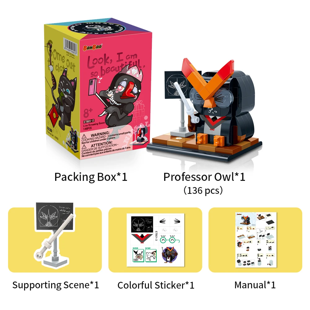 Конструктор "Персонаж" (151 елм.) Сова професор Розбудуйте свій власний унікальний світ разом з конструктором BanBao! Ця захоплива іграшка з будівельних блоків привносить у ваш дім безмежну творчість та можливості. Кожна деталь має своє визначене місце, а посібник крок за кроком допомагає вам створити ідеального героя чи незвичайний артефакт. Від епічних бойових роботів до захоплюючих героїв і неймовірних світів - BanBao дозволяє вам втілити будь-яку ідею у реальність. Цей конструктор - не лише розважальна іграшка, але й унікальна можливість для вашої дитини розвинути навички просторового мислення, творчості та логіки, під час якої вони будуть насолоджуватися кожним моментом побудови та гордитися своїм власним шедевром. З BanBao ваші можливості необмежені - дозвольте вашій уяві вільно розквітнути!