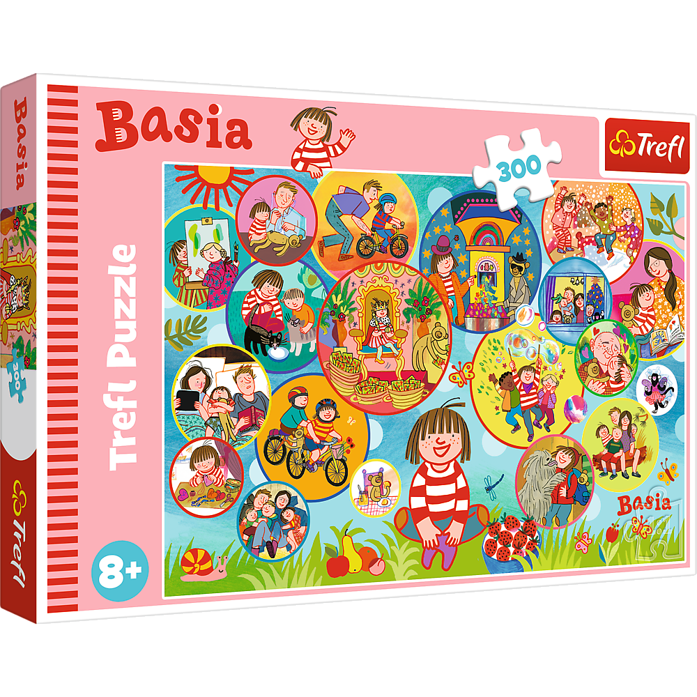 Пазли - (300 елм.) - "Базя" / Сім'я Базі Пазл із 300 елементів із зображенням Басяного щасливого дня.Виріб виготовлено з високоякісних матеріалів, з використанням спеціального каландрового світловідбиваючого паперу, що полегшує укладання. Виріб виготовлено в Польщі, для виготовлення використовувалися екологічні матеріали. |