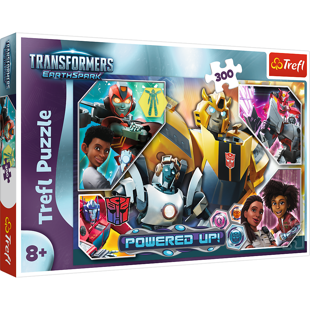 Пазли - (300 елм.) - "У світі роботів" / Trefl У світі Трансформерів це пазл із 300 елементів, що зображує героїв Трансформерів Earth Spark.Виріб виготовлено з високоякісних матеріалів, з використанням спеціального каландрового паперу, який відбиває світло, що полегшує його компонування. Виріб вироблено в Польщі, для виготовлення використовувалися екологічні матеріали.