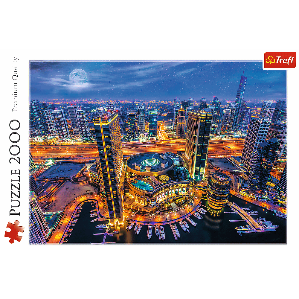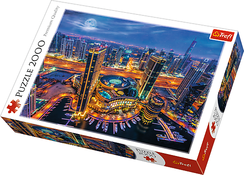 Пазли - (2000 елм.) - "Вогні Дубаїв, Дубаї" Пазл 2000 деталей з видом на живописне місто Дубаї. Після розтановки буде створена картинка розміром 96х68 см. Висока якість, насичений колір і безпечне складання забезпечується світловідбиваючим папером, покритим екологічними харчовими фарбами.