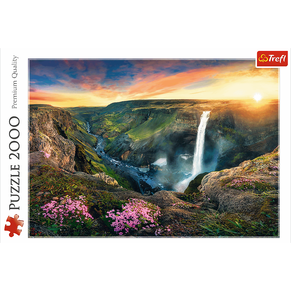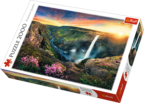 Пазли - (2000 елм.) - "Водоспад Хайфос, Ісландія" Пазл 2000 деталей з видом на живописний водоспад Хайфос. Після розтановки буде створена картинка розміром 96х68 см. Висока якість, насичений колір і безпечне складання забезпечується світловідбиваючим папером, покритим екологічними харчовими фарбами.