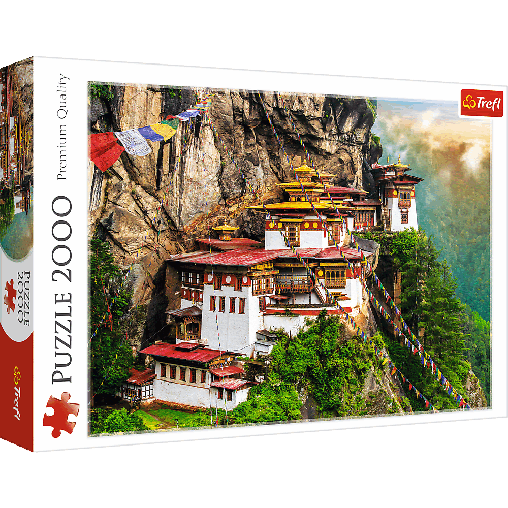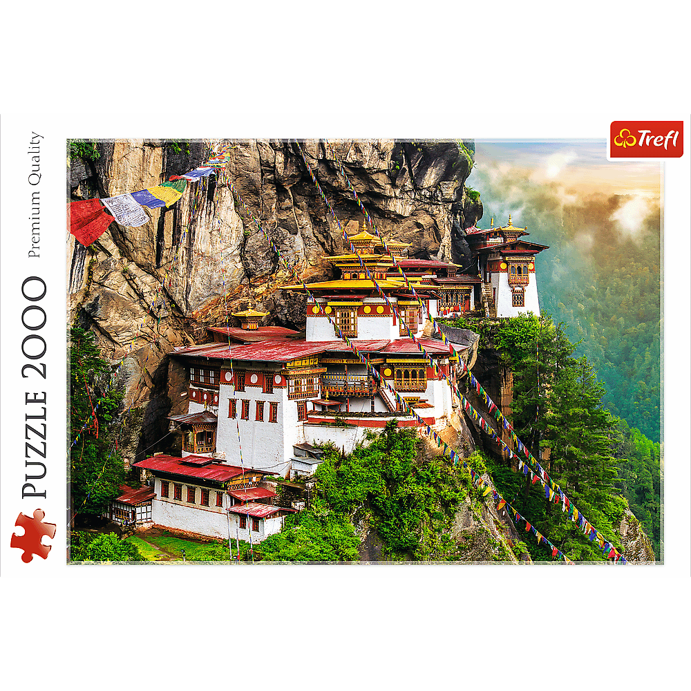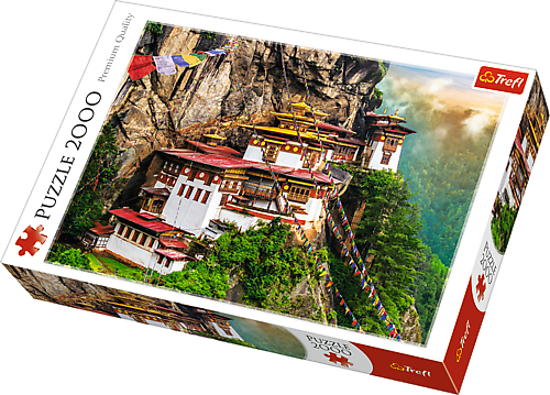 Пазли - (2000 елм.) - "Гніздо тигра, Бутан" Пазл 2000 деталей "Гніздо тигра, Бутан". Після розтановки буде створена картинка розміром 96х68 см. Висока якість, насичений колір і безпечне складання забезпечується світловідбиваючим папером, покритим екологічними харчовими фарбами.