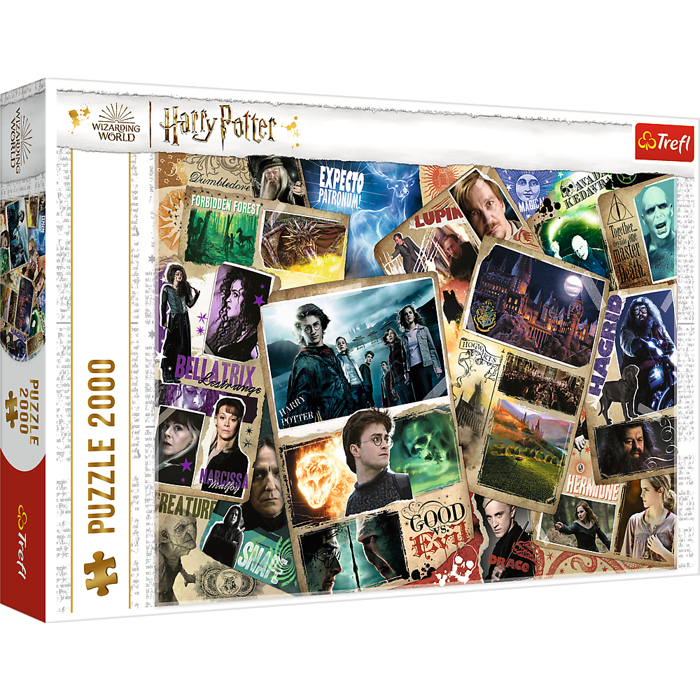 Пазли - (2000 елм.) - "Гаррі Поттер - Герої" Головоломка, що складається з елементів 2000 року, що зображують героїв із серіалу фільму про Гаррі Поттера. Після прокладки буде створено зображення з розмірами 961x682 мм. Продукт був виготовлений з високоякісних матеріалів, використовуючи спеціальний паперовий папір, що відбиває світло, що полегшує проведення. Продукт був виготовлений у Польщі, а екологічні матеріали використовували для виробництва.