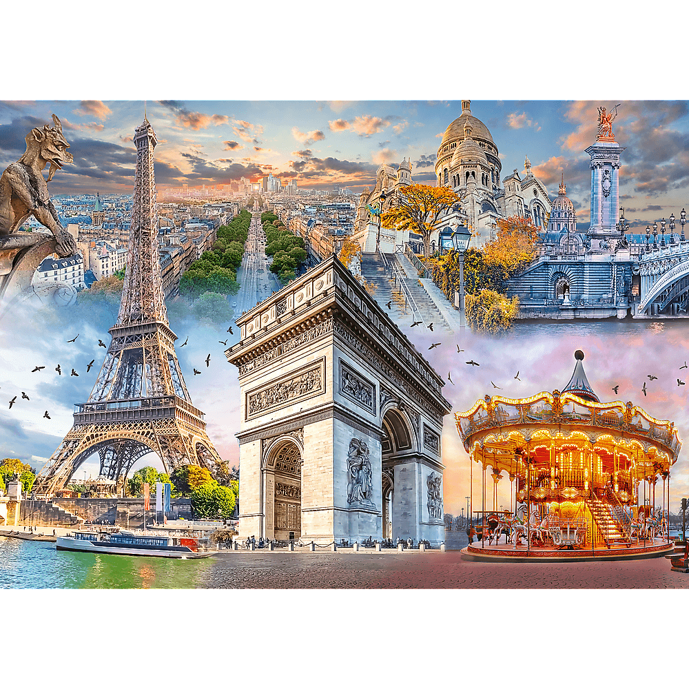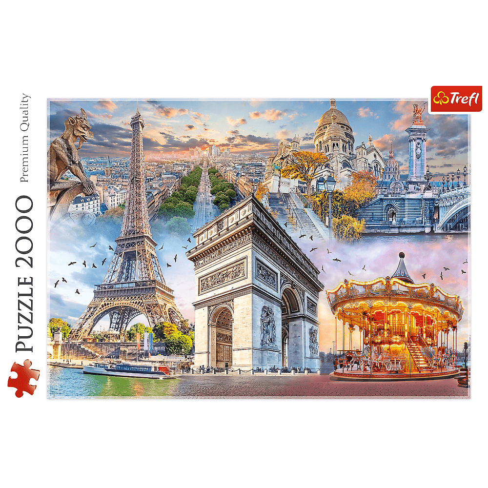 Пазли - (2000 елм.) - "Вихідні у Парижі" Пазл із 2000 деталей із зображенням найвідоміших будівель Парижа . Після укладання вийде малюнок розміром 961х682 мм.Виріб виготовлено з високоякісних матеріалів, з використанням спеціального каландрового світловідбиваючого паперу, що полегшує укладання. Виріб виготовлено в Польщі, для виготовлення використовувалися екологічні матеріали.