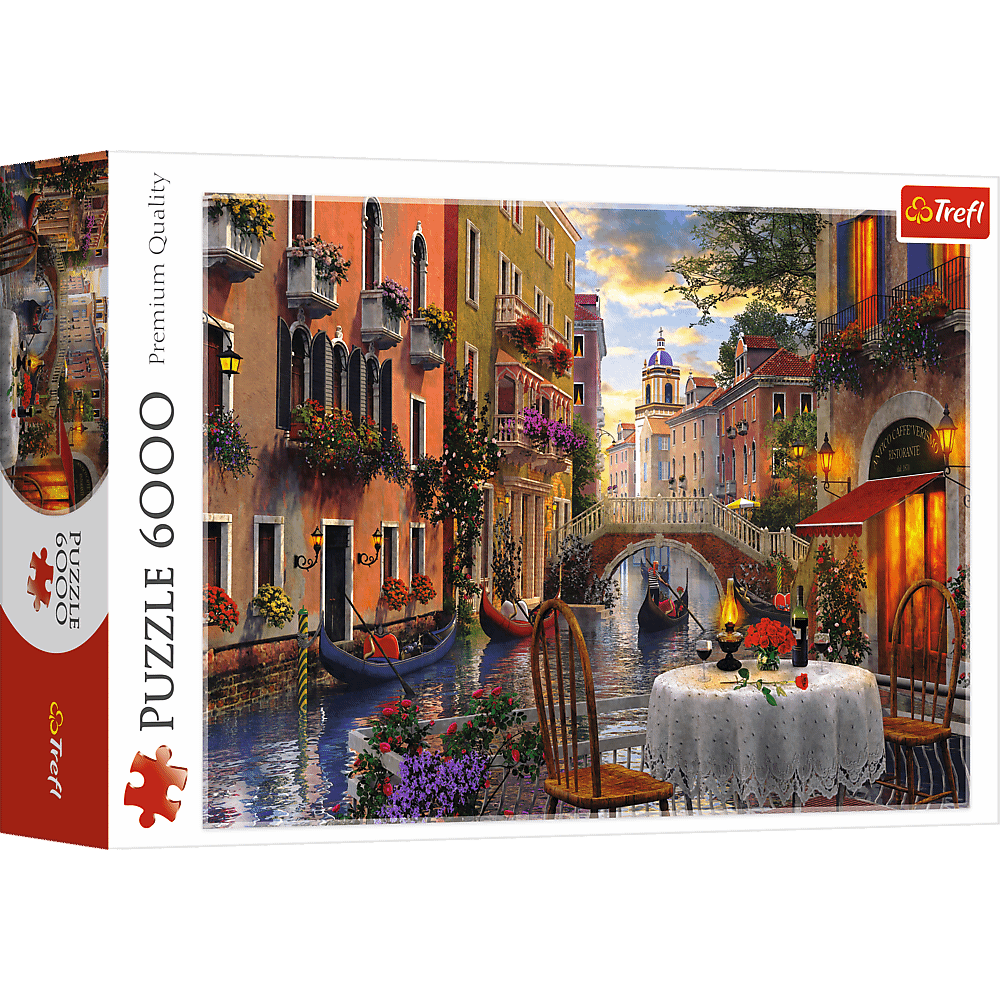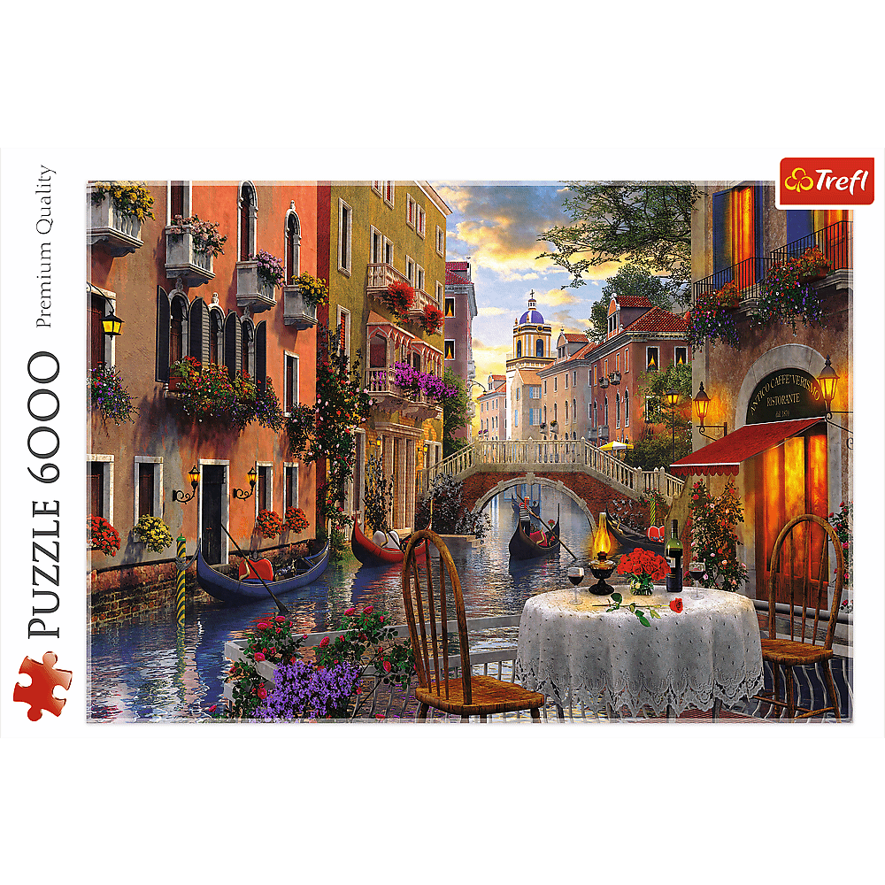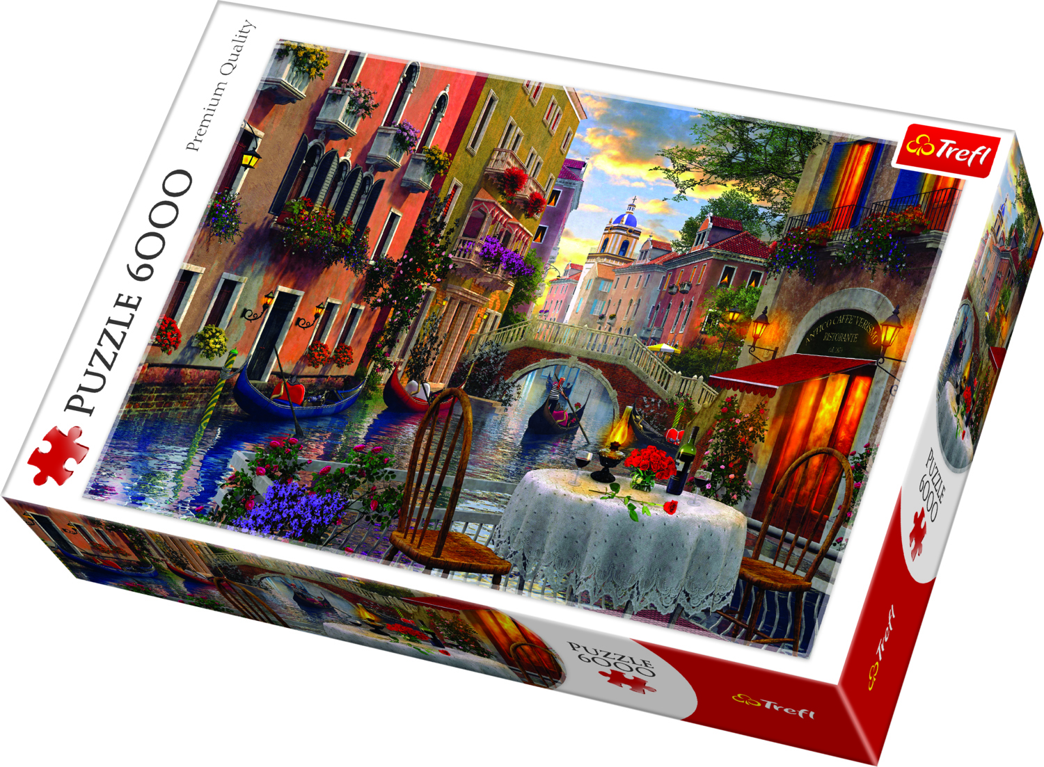 Пазли - (6000 елм.) - "Романтична вечеря" Пазл значних розмірів, що складається з 6000 деталей "Романтична вечеря". Після складання буде створений малюнок розміром 1360х960 мм. Виріб виготовлено з якісних матеріалів з використанням спеціального каландрового світловідбиваючого паперу, який полегшує складання. Виріб вироблено в Польщі, для виробництва використовувалися екологічні матеріали.