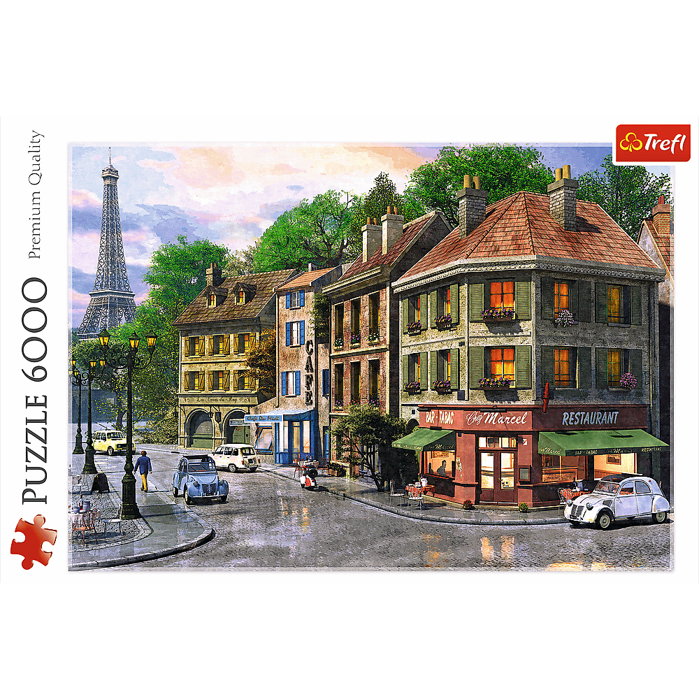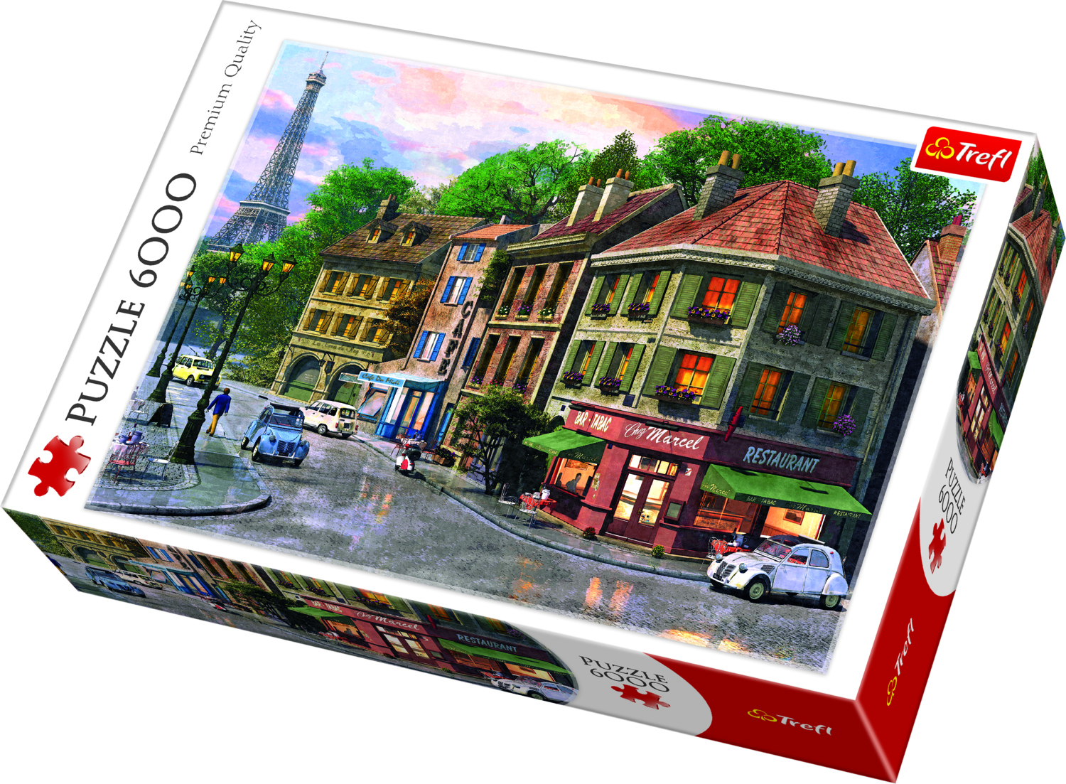 Пазли - (6000 елм.) - "Вулиця Парижа" Пазл значних розмірів, що складається з 6000 деталей "Вулиці Парижу". Після складання буде створений малюнок розміром 1360х960 мм. Виріб виготовлено з якісних матеріалів з використанням спеціального каландрового світловідбиваючого паперу, який полегшує складання. Виріб вироблено в Польщі, для виробництва використовувалися екологічні матеріали.