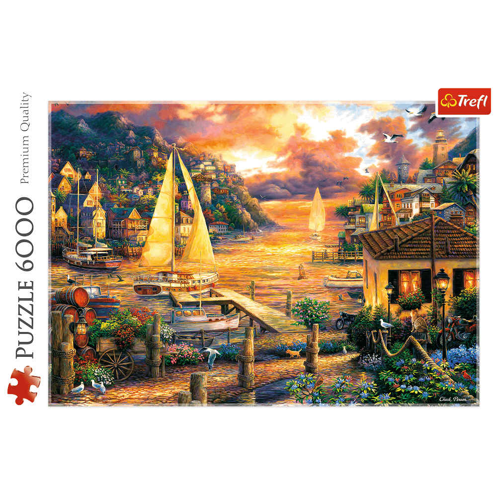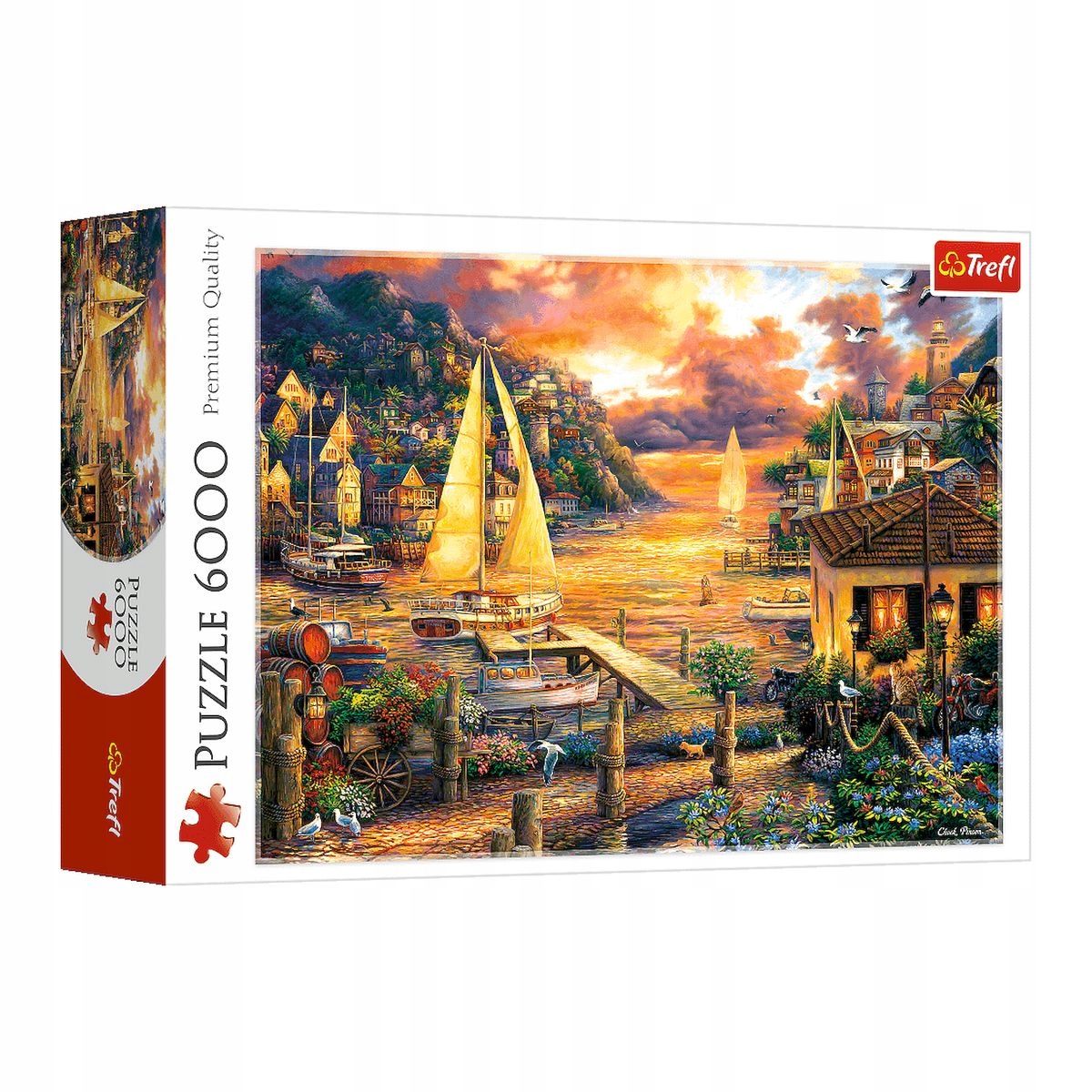 Пазли - (6000 елм.) - "Занурюючись у сни" Пазл значних розмірів, що складається з 6000 деталей, з видом на красиву бухту. Після складання буде створений малюнок розміром 1360х960 мм. Виріб виготовлено з якісних матеріалів з використанням спеціального каландрового світловідбиваючого паперу, який полегшує складання. Виріб вироблено в Польщі, для виробництва використовувалися екологічні матеріали.