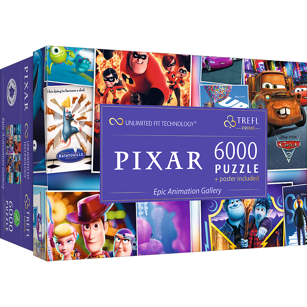 *Пазли - (6000 елм.) - Безмежна колекція: "Галерея епічної анімації"/Trefl Відкрийте для себе пазл Trefl Prime UFT - Epic Animation Gallery з вражаючими 6000 елементами! Складіть колаж із зображенням персонажів відомих мультфільмів Pixar! Чим вони відрізняються: - найтовстіша дошка для пазлів на ринку, - особлива, неправильна форма елементів, - пазл можна рухати і обертати, не боячись, що він розвалиться. 4 пазли (по 1500 елементів) можна об'єднати, щоб сформувати велике зображення, запропоноване на плакаті, або дати волю своїй уяві і створити власну композицію! Пазл є чудовим тренуванням пам'яті, розвитком мануальних навичок, вправлянням у зосередженості, терпінні та сприйнятливості. Унікальний подарунок для любителів пазлів, дорослих і дітей старше 12 років. Загальний розмір пазла, складеного запропонованим нами способом, становить 1 333 x 928 мм*. *Панелі/окремі пазли також можна комбінувати у будь-який спосіб завдяки технології UFT. Кожна окрема комбінація визначає інший розмір загальної композиції. |