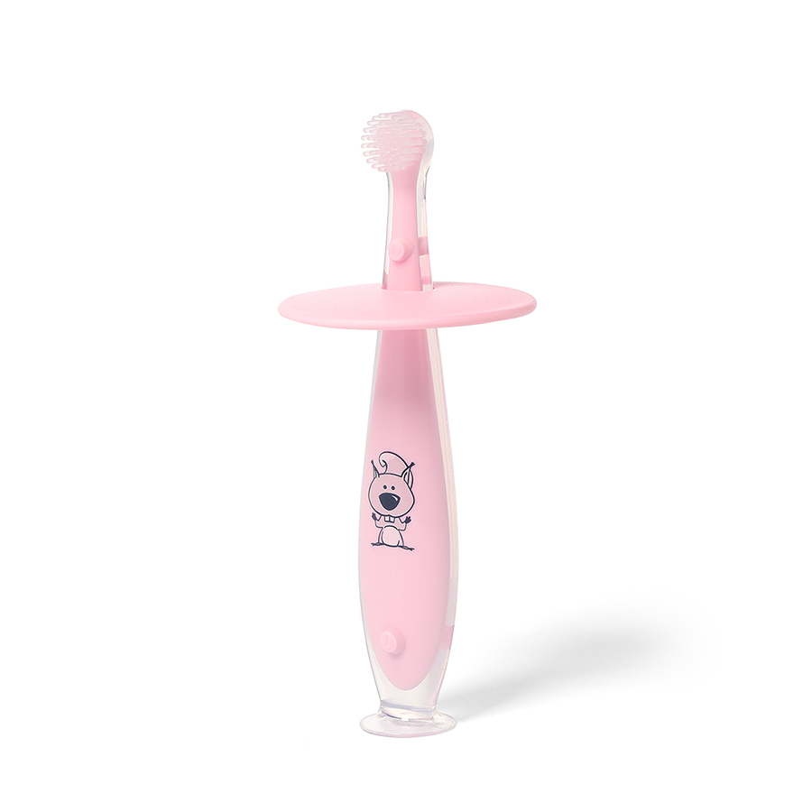 Safe toothbrush Soft silicone toothbrush with a limiter protecting against inserting it too deep into the mouth. It is intended for daily oral hygiene. The playful design makes brushing teeth a fun activity. Ideal for learning independent tooth brushing FEATURES: