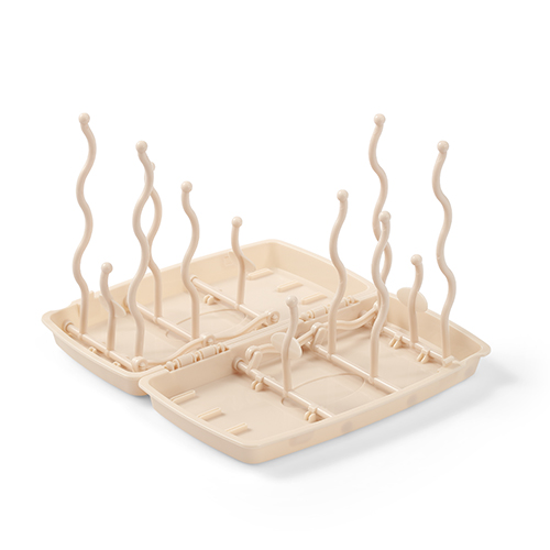 TULIP bottle drying rack A universal bottle and teat drying rack is perfect for use both at home and in travel. It is functional, suitable for all bottle types, easy to fold and clean. It has been designed to easily collect water, with no need to place it in the sink. An additional advantage is small size and original shape. PROPERTIES: