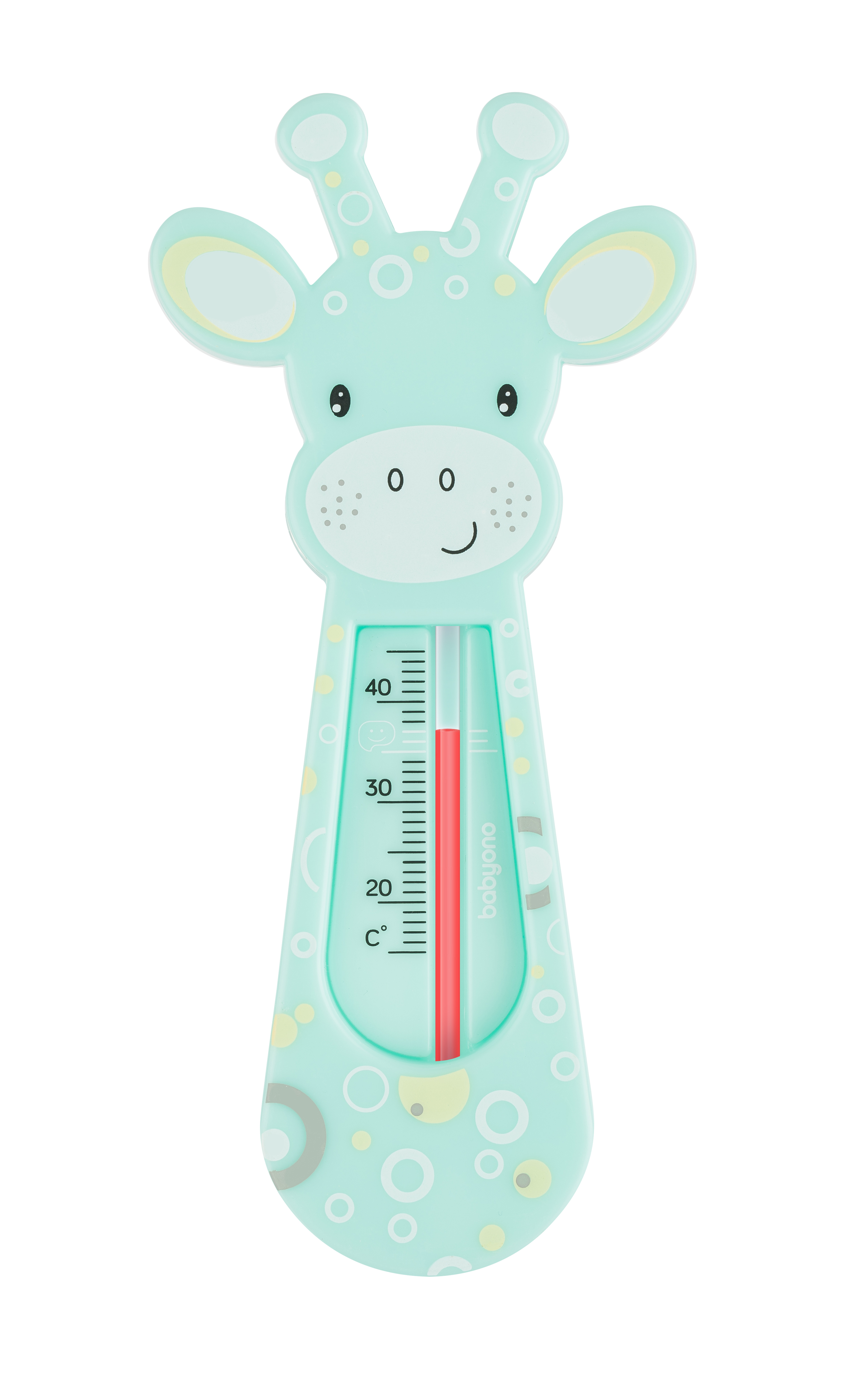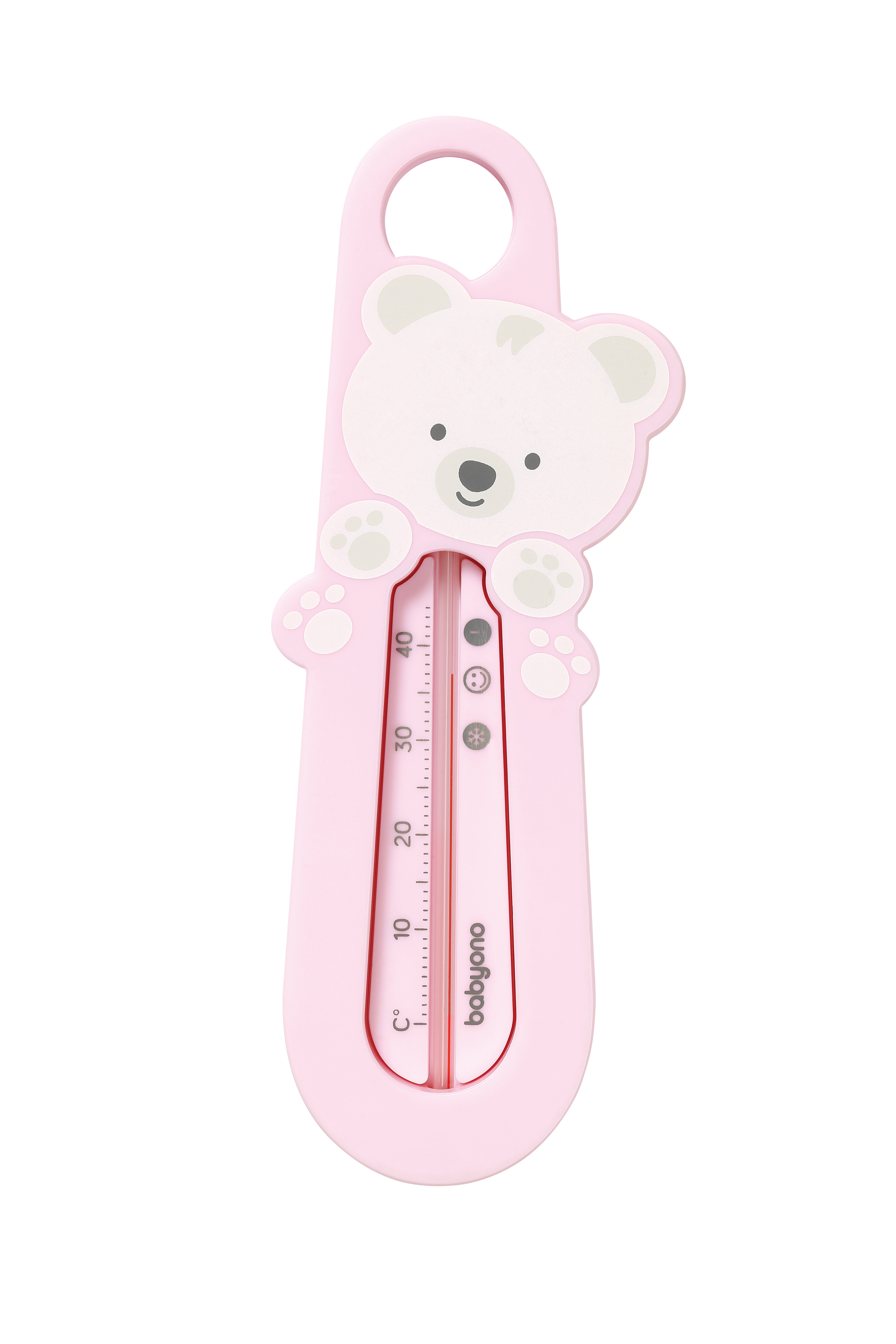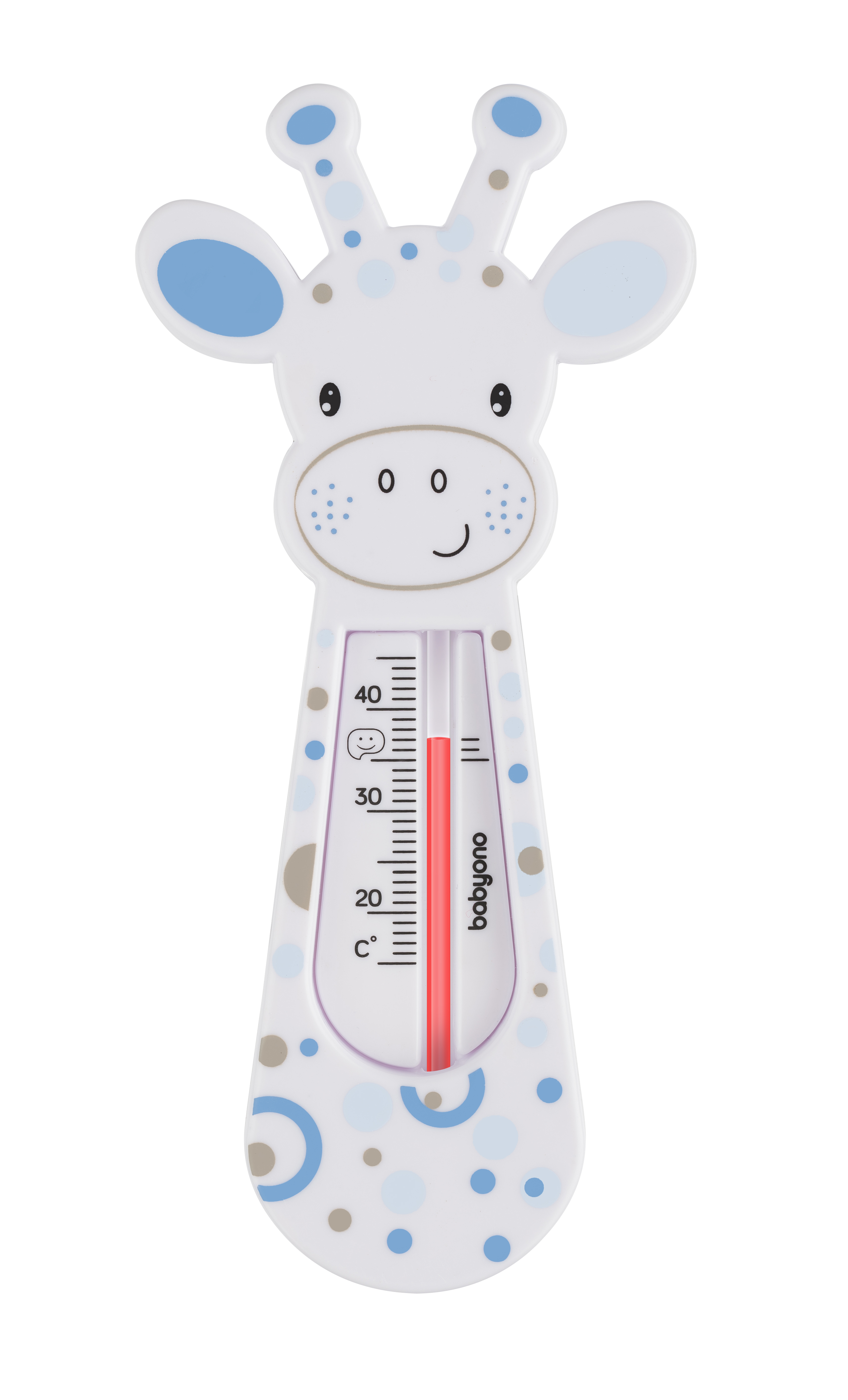 Bear bath thermometer The Babyono bath thermometer is very comfortable and necessary for every newborn bath. It help to get and maintain the right temperature for your child’s bath. It is complete safe, because we used paraffin embedded in a safe tube. The large and legible scale makes it easier to read the temperature altitude. Thanks to the light construction, the thermometer floats on the surface of the water, allowing temperature control. The correct water temperature should be about 37 degrees Celsius and it is marked on the scale with a smiley face. SAFE AND PRACTICAL: