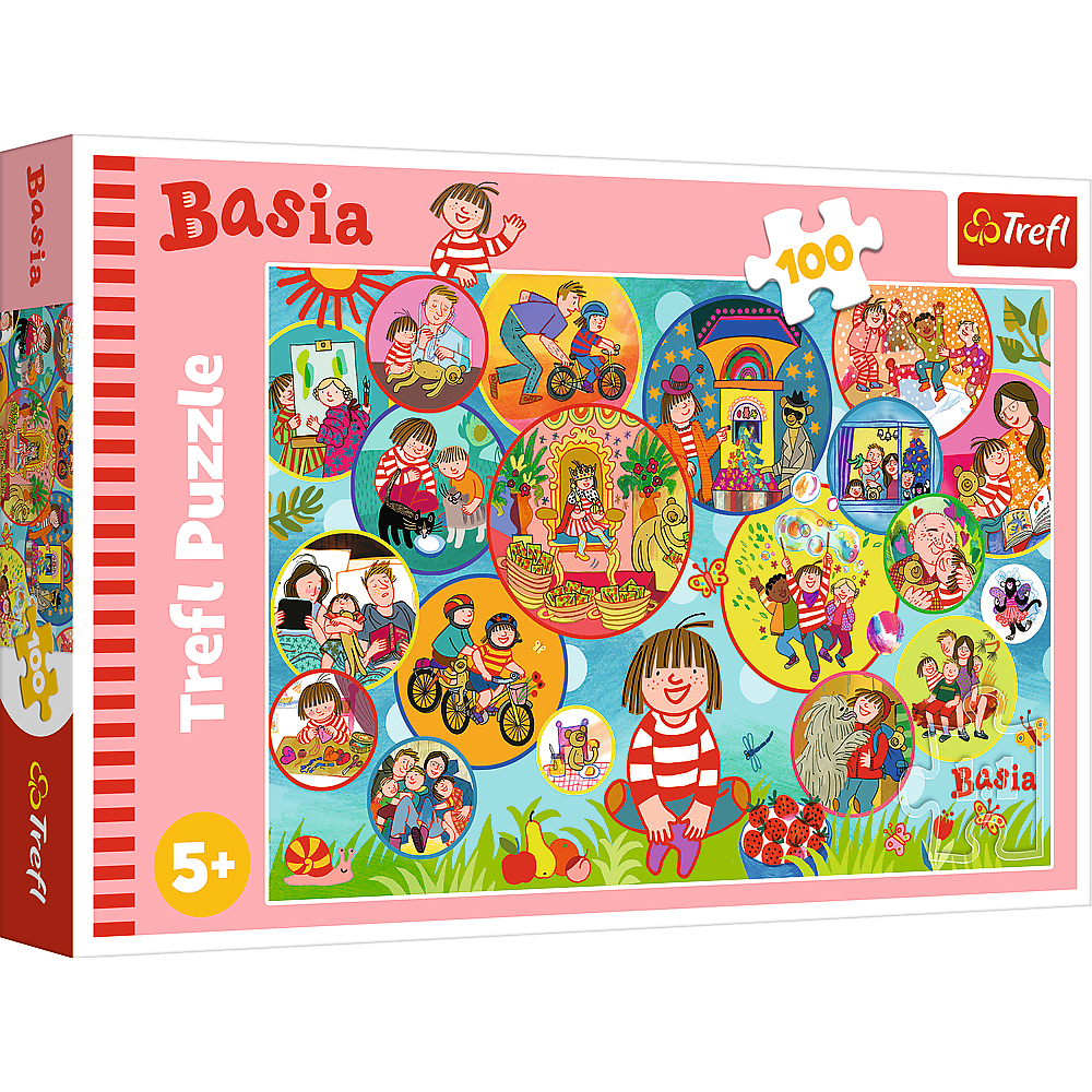 Puzzles - (100 elm.) - "Spend the day with Bazi" / The Bazi family Puzzle S proved the day with Basia is a 100 piece puzzle designed for all fans of Basia's adventures. After stacking, a drawing with a size of 410x278 mm is created. |