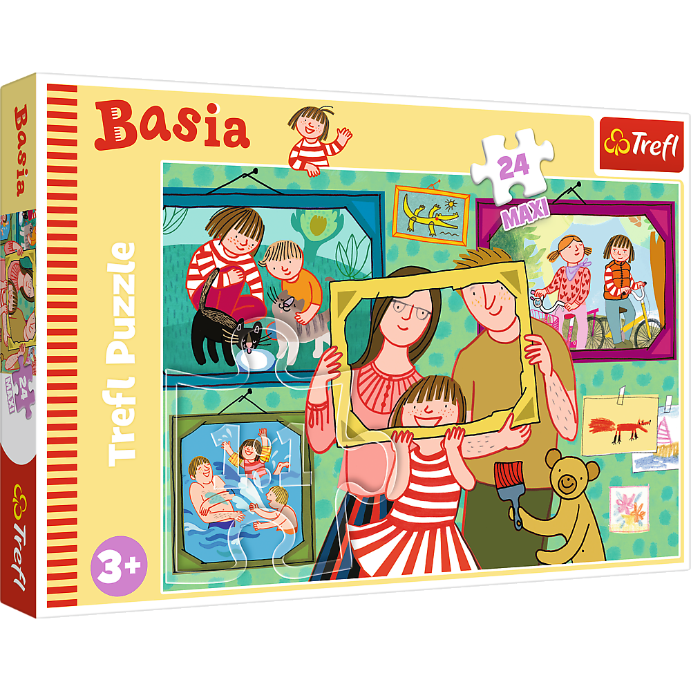 Puzzles - (24 elm. MAHI) - "Bazi Day" / Bazi family Basia and her day is a puzzle with 24 MAXI elements, created for fans of Basia's books. After stacking, the picture will be 600x400 mm in size. The product is made of high-quality materials, with the use of special calendered reflective paper, which facilitates installation. The product is made in Poland, ecological materials were used for production. |