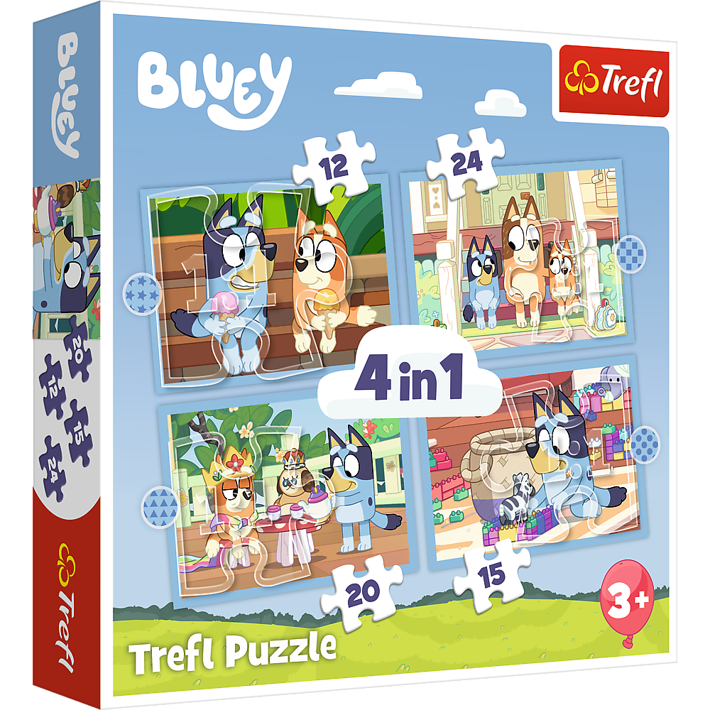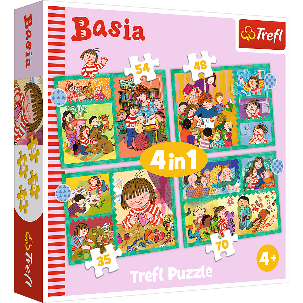 Puzzles - (4in1) - "Before going to bed" / The Treflik family Not one, not two, but four puzzles in one box - a real holiday for puzzle lovers! After compiling, we will get four different sized pictures with the characters of the cartoon The Treflik family. The set perfectly meets the expectations of siblings - everyone will even simultaneously lay out your favorite picture. Different number of elements allows both younger and older children to play. Timely placement, comparison of images, search for differences and similarities can be additional entertainment. Puzzles for children! To make the puzzle, we used environmentally friendly materials and linen paper, which eliminates the reflection of light, which ensures safety and fun. Box:
