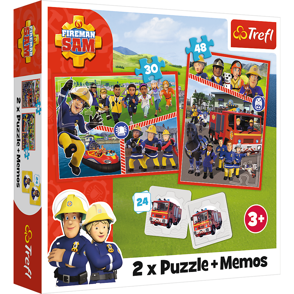 Puzzles - (2in1 + Memo) - "Fireman Sam's Team" Puzzles, consisting of 2 independent puzzles and a memory game, are intended for all fans of the Fire Sam fairy tale. After assembling the puzzles, pictures with a size of 275 x 205 mm are obtained. The variety of puzzle elements allows both young and slightly older children to play. The memory game allows children to train memory, train concentration and receptivity. |