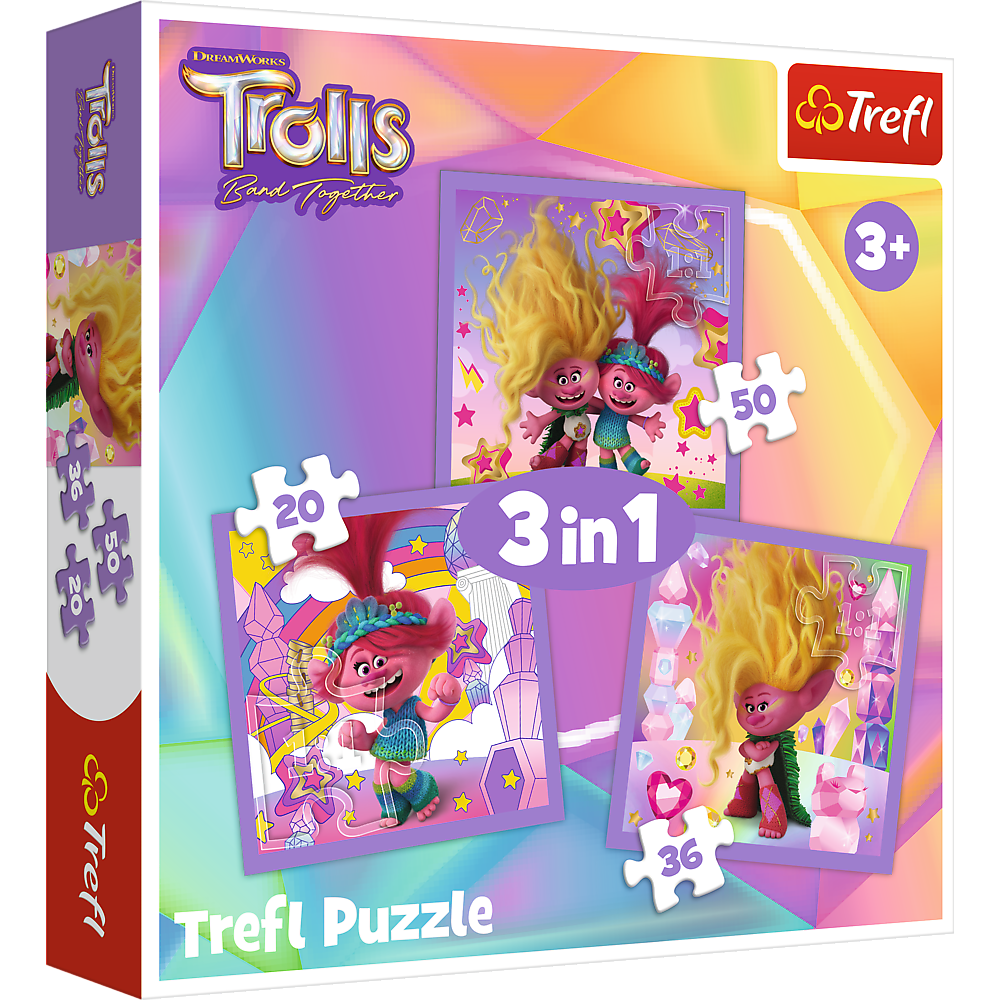 34870 | Пазли - (3в1) - "Зустрічайте веселих тролів" / Trefl | Trefl |