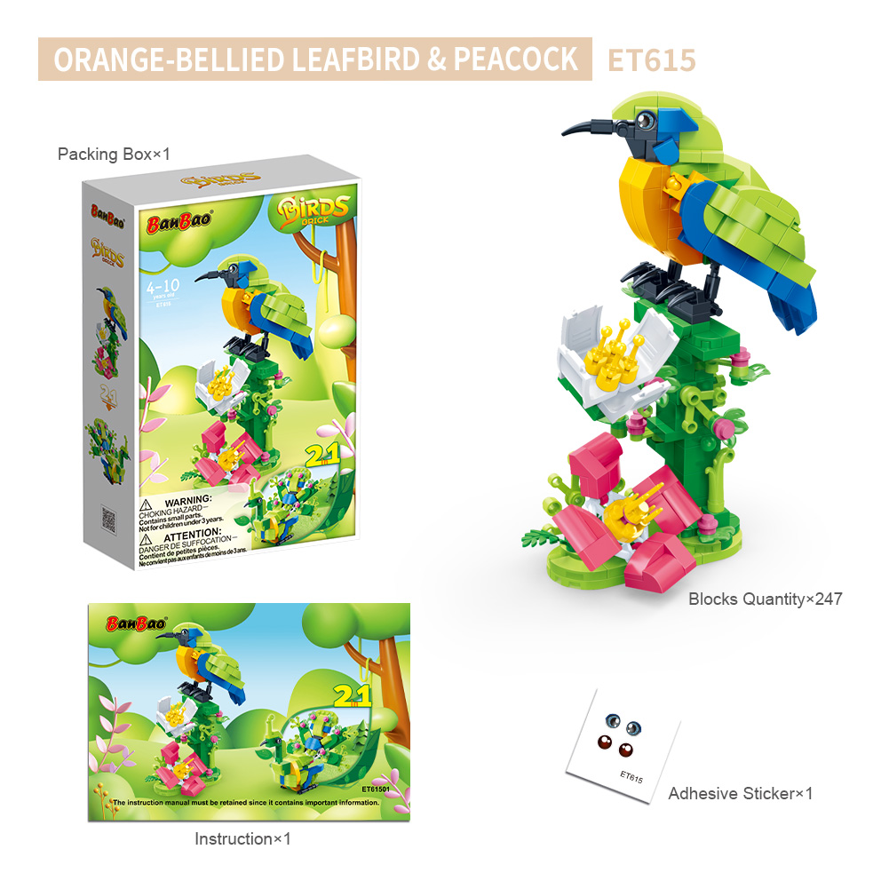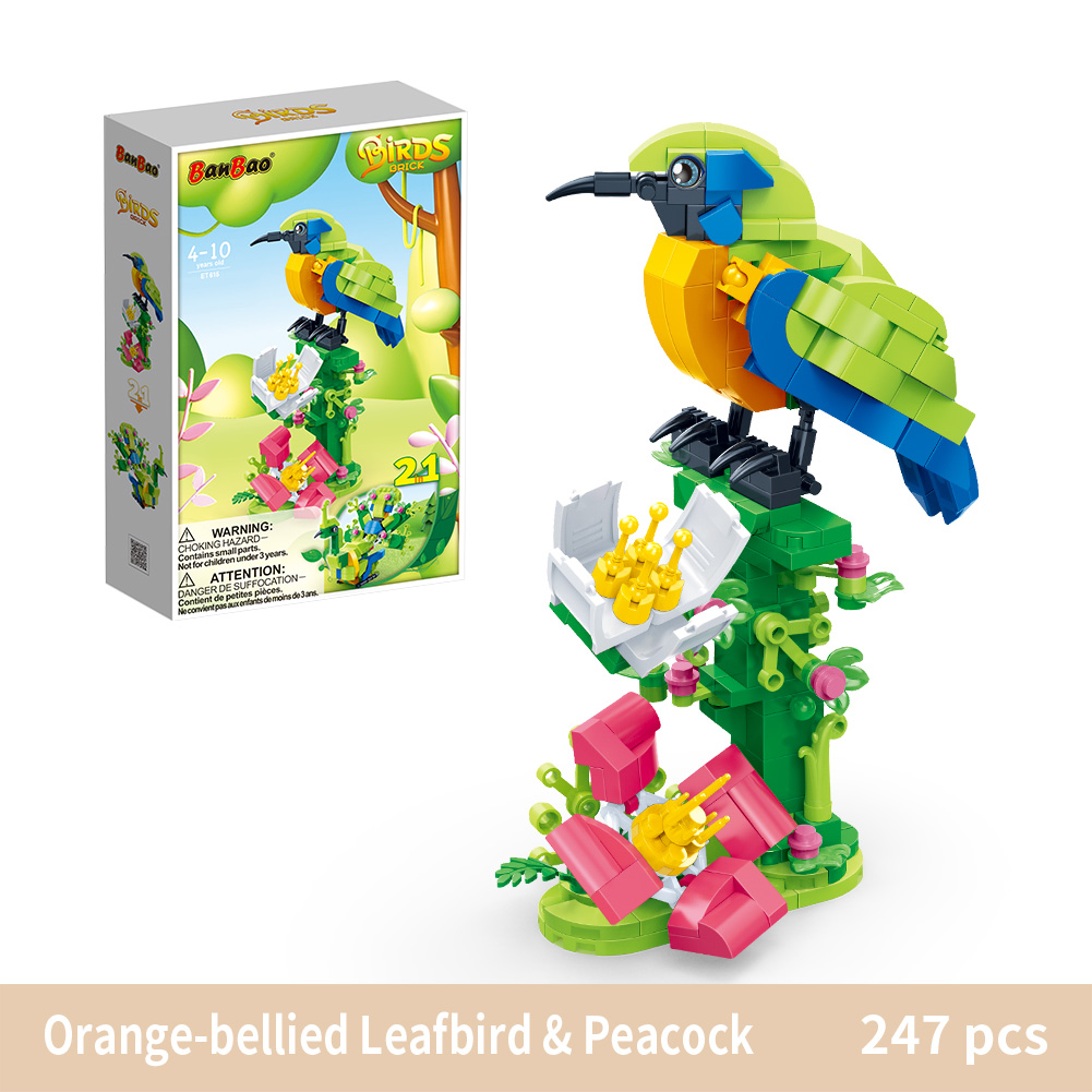 Конструктор "Пташки" (247 елм.) 2 в 1:Оранжева пташка/Павич/BanBao Яскраві набори дозволяють дітям власноруч створити улюблених птахів. Деталі легко з’єднуються, тож дитина із задоволенням збиратиме конструктор знову і знову.