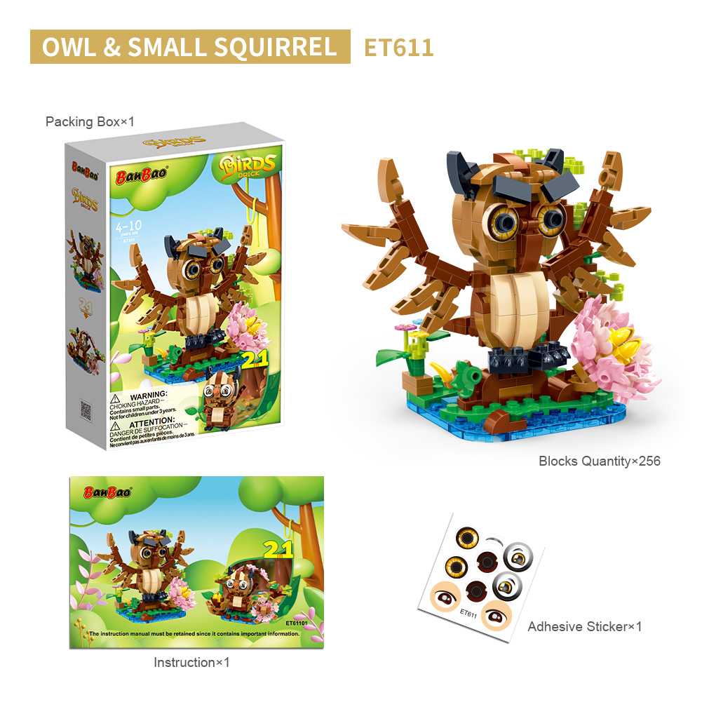 Конструктор "Пташки" (256 елм.) 2 в 1:Сова/Білка/BanBao Яскраві набори дозволяють дітям власноруч створити улюблених птахів. Деталі легко з’єднуються, тож дитина із задоволенням збиратиме конструктор знову і знову. Конструктор 2 в 1:сова/білка
