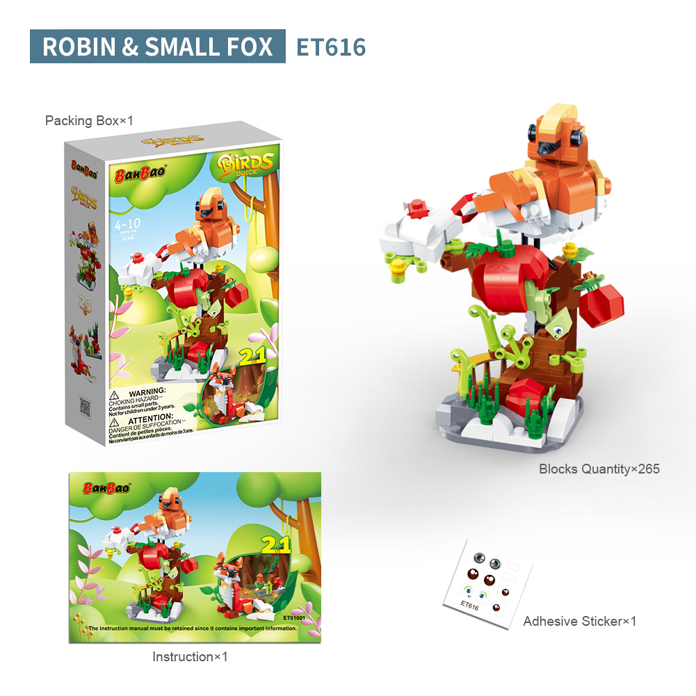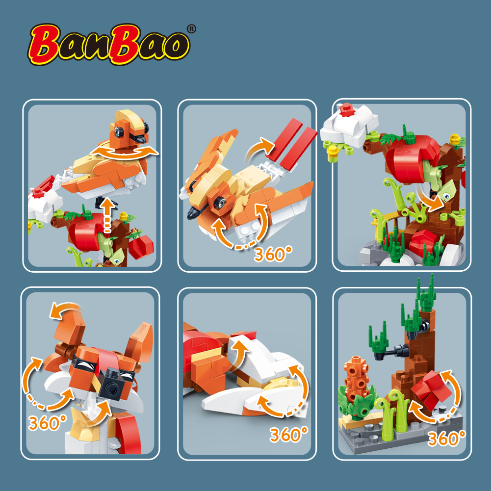 Конструктор "Пташки" (265 елм.) 2 в 1:Барвиста пташка/Лис/BanBao Яскраві набори дозволяють дітям власноруч створити улюблених птахів. Деталі легко з’єднуються, тож дитина із задоволенням збиратиме конструктор знову і знову.