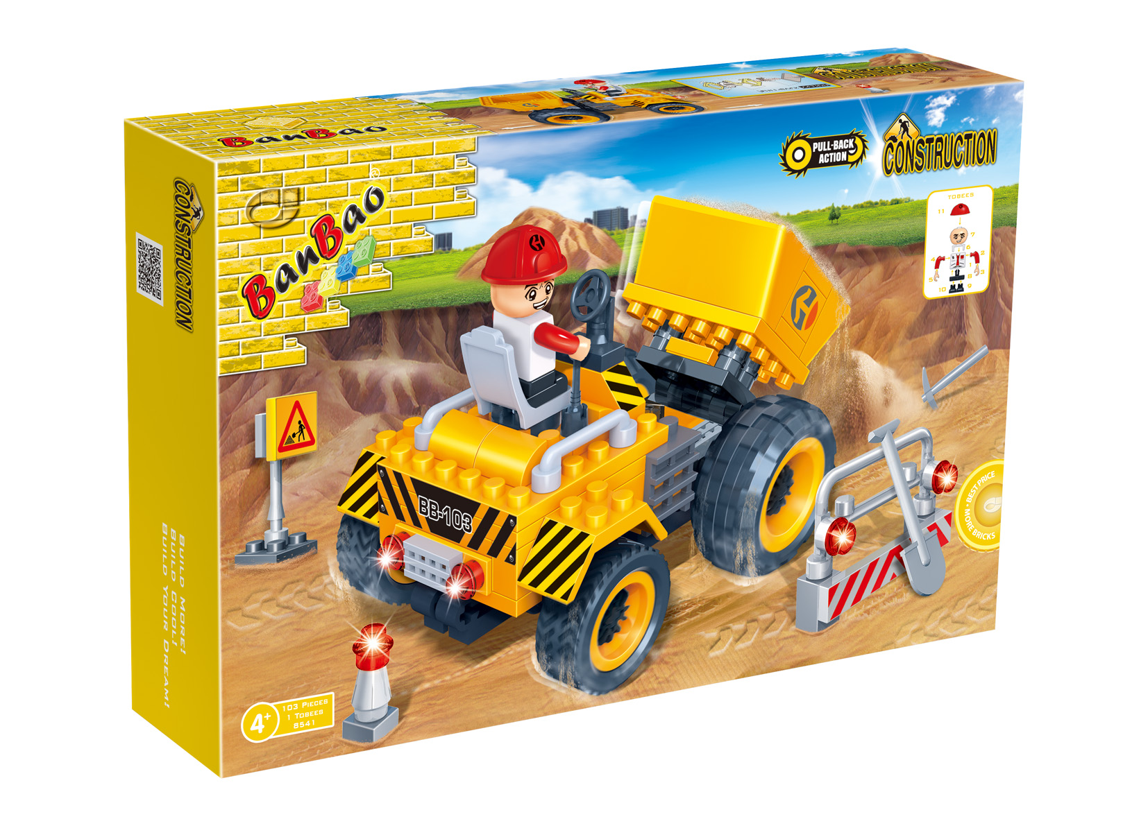 Конструктор "Будівельна техніка" (103 елм.) Навантажувач Пластиковий конструктор BanBao "Будівельна техніка" - це невеликі будівельні блоки за допомогою різних комбінацій і уяви Вашої дитини перетворюються в чудові предмети. "Міні навантажувач маневрений і швидкий, що є перевагою на складних будівельних об'єктах. Ще одна його важлива перевага - функціональність, ківш цієї машини згодиться для вирішення безлічі різноманітних завдань на будівництві." В процесі захоплюючої гри дитина зможе комбінувати різні деталі і розігрувати цікаві сюжети. Захоплюючий ігровий процес прекрасно розвиває моторику рук, логічне та образне мислення, увагу і сприяє виробленню певної посидючості, яка стане в нагоді дитині в школі. Всі деталі конструктора виготовлені з нетоксичних, нешкідливих для здоров'я дитини і довкілля матеріалів.