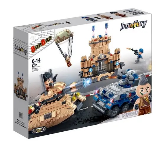 Конструктор "Армія" (538 елм.) 3 в 1 танковий бій Будівельні іграшки BANBAO завжди присвячують себе дослідженню та розробці, щоб створити освітній будівельний світ для дітей. Концепцією наших будівельних іграшок є "виховання із задоволенням, поєднуючи руки та мозок", вони розвивають навички спостереження малюка, стимулюють уяву та координацію дітей, покращують навички спілкування. Будівельний набір BANBAO Iron Fury включає 538 деталей та 3 фігурки, найкращий творчий подарунок. Iron Fury можна використовувати у навчанні та сім’ї. Упакований в барвисту коробку, включає інструкції та наклейки. Легко очисні деталі, просто протирайте їх м’якою тканиною, коли не використовуєте. Виготовлено з екологічно чистого матеріалу, щоб забезпечити безпеку ваших дітей. |