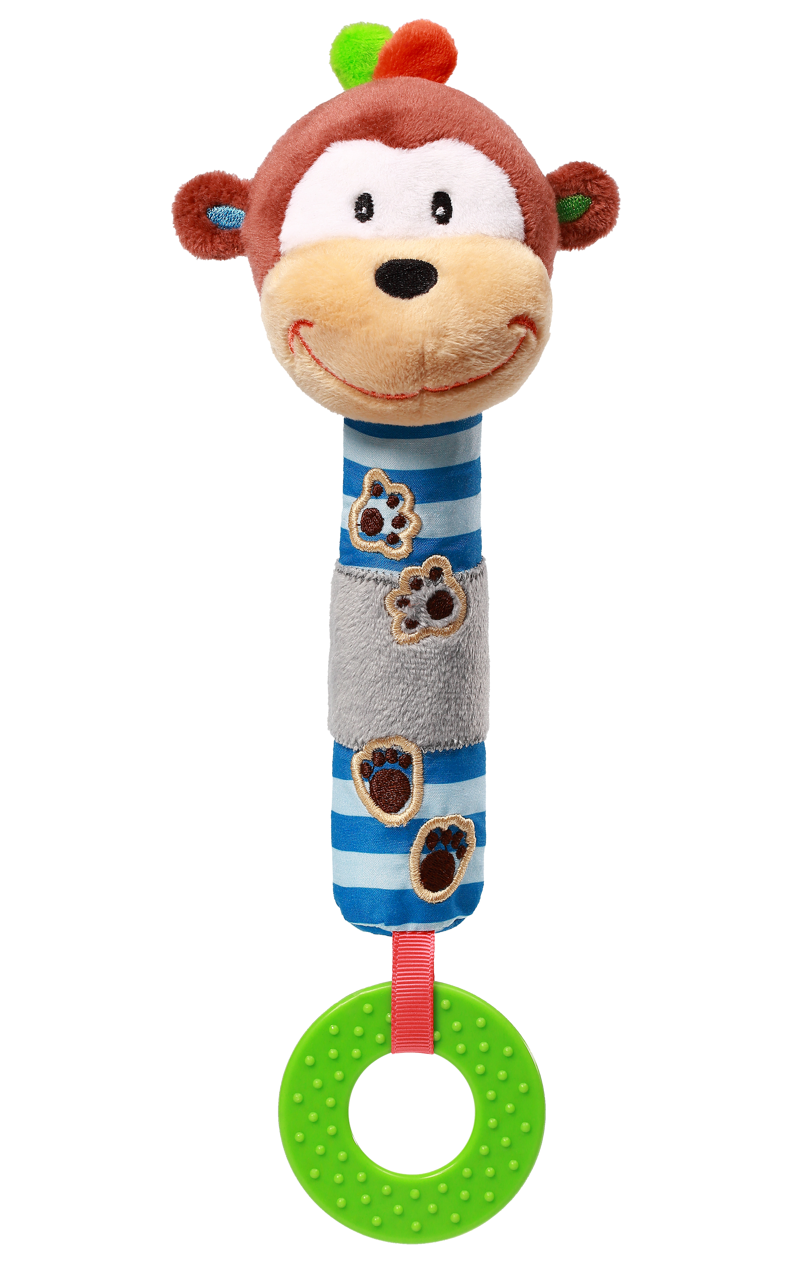 Плюшева пищалка допомагає дитині тренувати дрібну моторику та розвивати ручні навички. Малюк перевіряє, що станеться, якщо він схопить іграшку. Таким чином він вивчає причинно-наслідкові зв'язки.