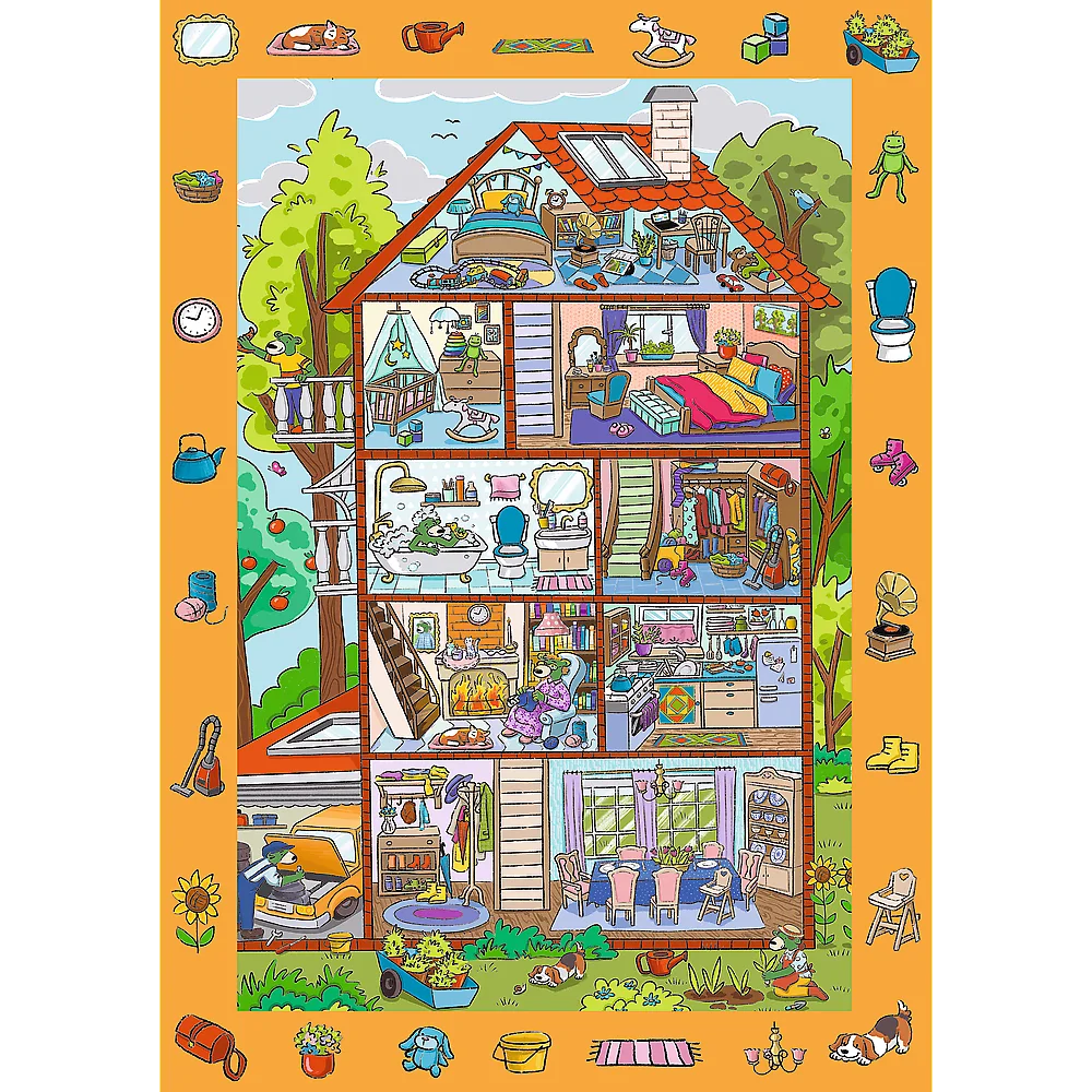 Пазли - (24 елм.) "Вдома" Пазли "Вдома" на 24 елементи - це унікальний яскравий пазл, який обов'язково пробудить спостережливість. У цій барвистій головоломці на вас чекає незвичайна ілюстрація, повна деталей і прихованих елементів. Основне завдання - скласти пазл і знайти елементи, які зображені в рамці.