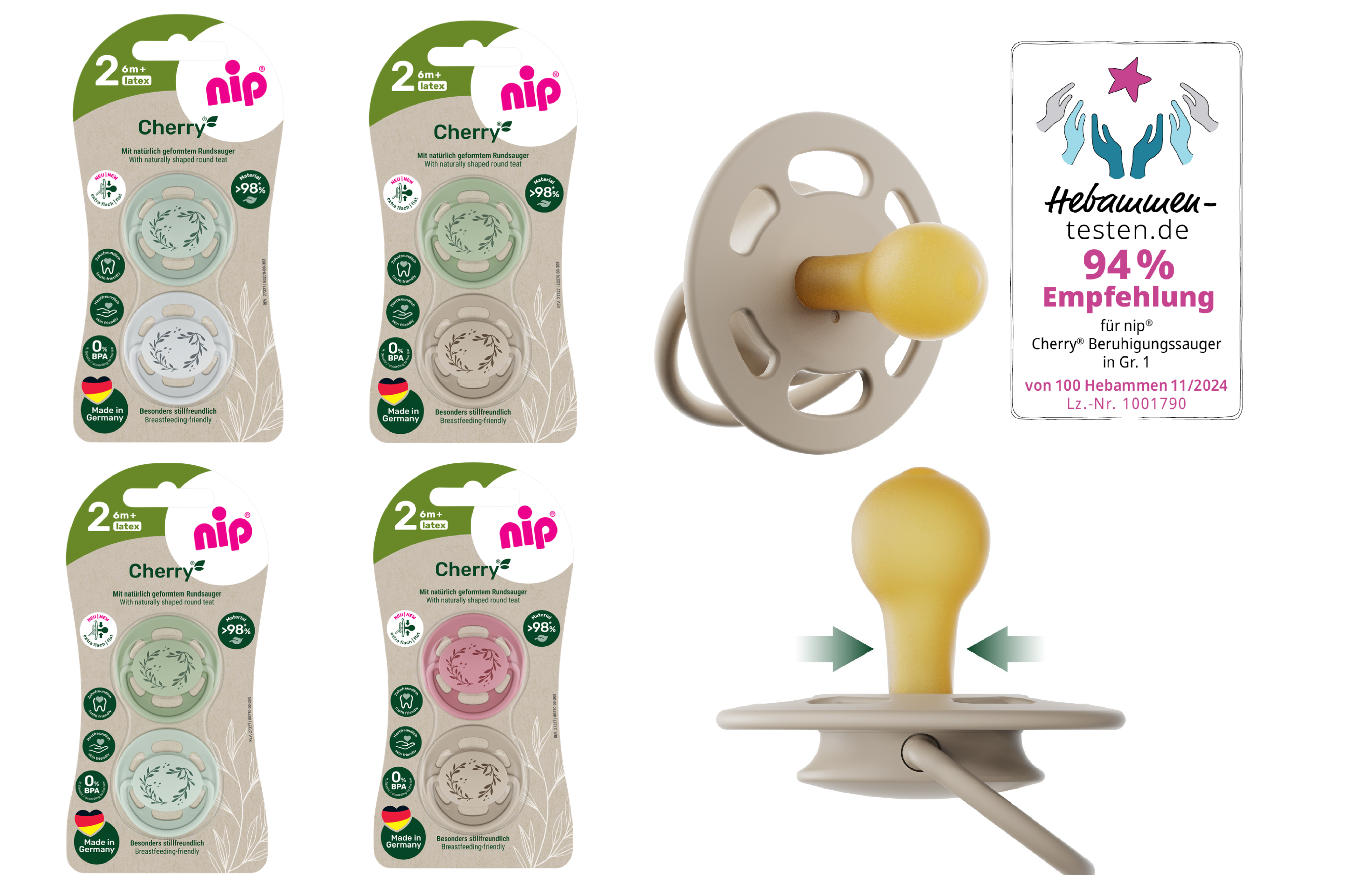 Пустушки круглі "Вишенька "розмір 2 /(зелена/сіра) (латекс) (від 6 місяців),(2 шт) / NIP