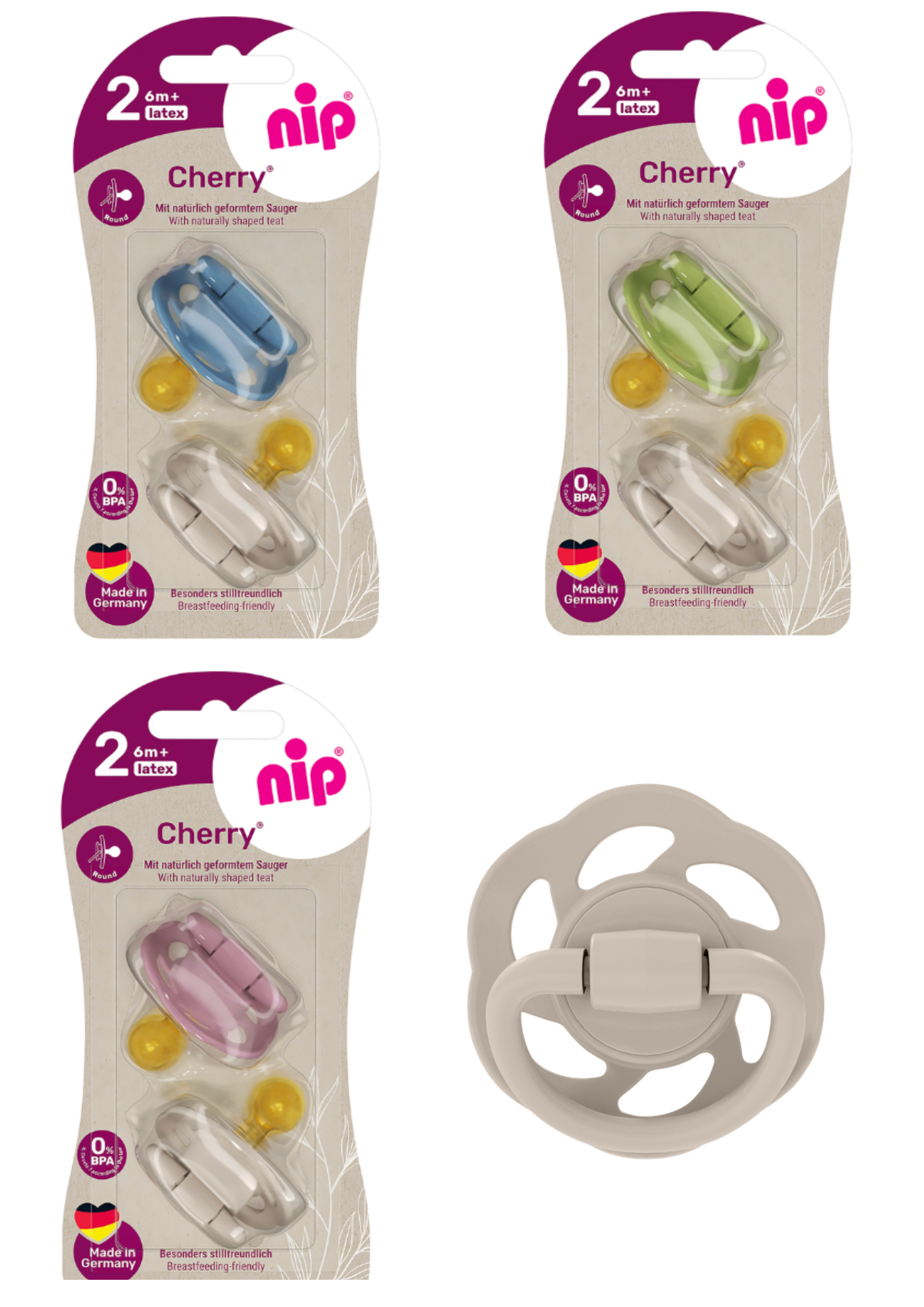 Пустушки круглі "Вишенька"розмір 2 (зелений/беж) (латекс) (від 6 місяців),(2 шт)/ NIP М'яка та зручна соска, яка ідеально поєднується з грудним вигодовуванням. Виготовлена з натурального латексу. Природна форма імітує форму материнських грудей, закруглений форма, великі вентиляційні отвори для запобігання запріванню та зручне кільце.