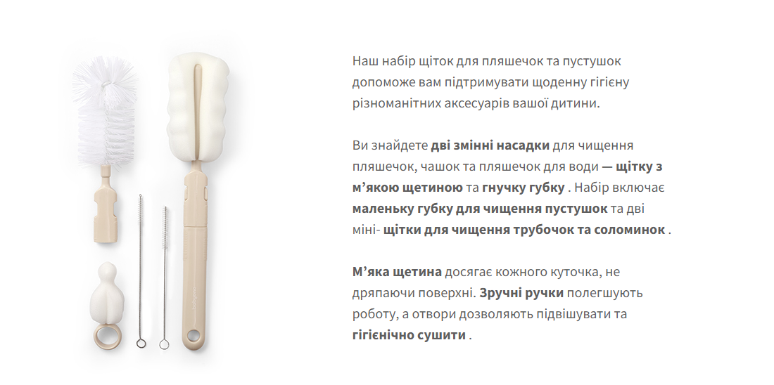 Йоршики (набір) для миття пляшок з зміною ручки (Бежевий) /"Babyono"