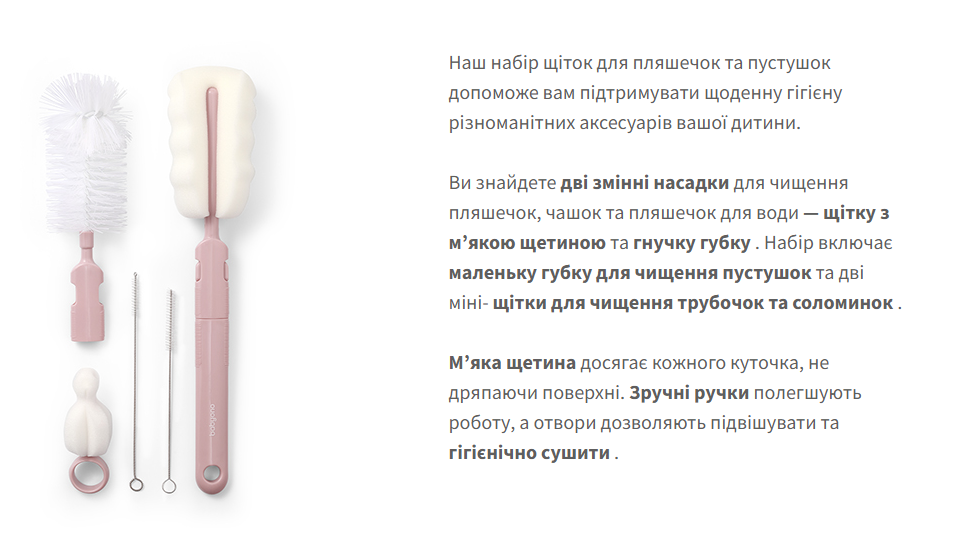 Йоршики (набір) для миття пляшок з зміною ручки (Рожевий) /"Babyono"