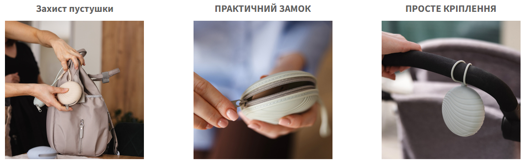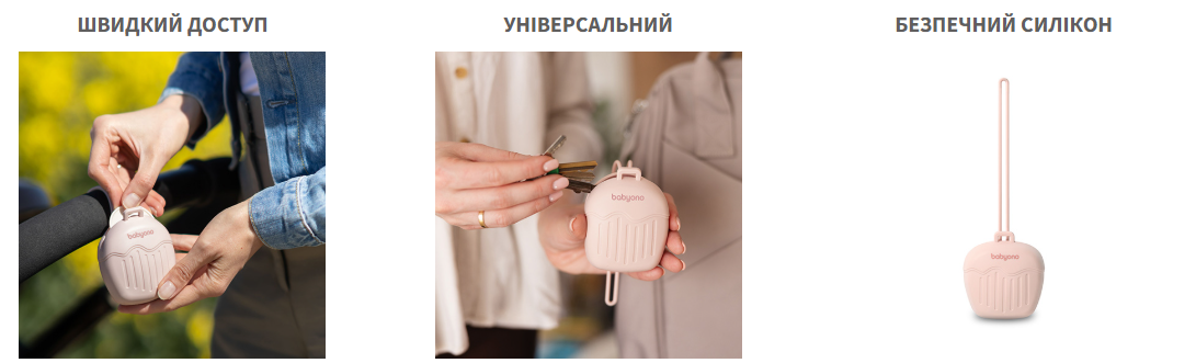 Футляр для пустушки силіконовий (ніжно- рожевий)/"Babyono" Безпечне та гігієнічне місце для зберігання пустушки вашої дитини- це тримач для пустушки Babyono на блискавці! Блискавка ефективно захищає від пилу, вологи та бактерій, гарантуючи, що пустушка залишатиметься чистою та не випаде з контейнера. Гнучка кліпса дозволяє прикріпити тримач до сумки, рюкзака, валізи або ручки коляски. Тож ви можете використовувати його вдома, на прогулянках чи в дорозі — ваша пустушка завжди буде під рукою. Тримач виготовлений із силікону, м’який, міцний і легко миється в посудомийній машині. Доступний до замовлення в блакитному, рожевому, м'ятному та бежевому кольорі.